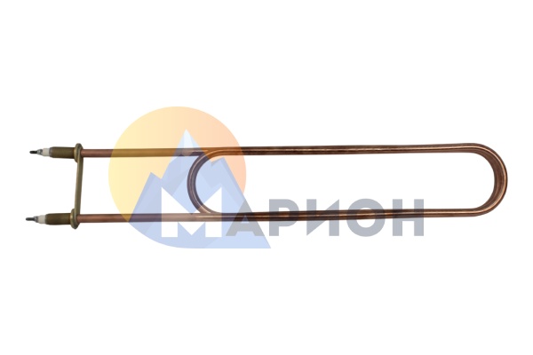 Нагреватель для воды выполнен из цельнотянутой медной трубы диаметром 13 мм, развернутая длина нагревателя — 2490 мм, длина заделки контакта — 200 мм, форма Ф7, скрепка. Мощность нагревателя — 11.6 кВт, напряжение — 380 В. Герметичное соединение реализовано через латунные штуцеры с защитной планкой, в качестве варианта подключения используется резьбовая шпилька М5.